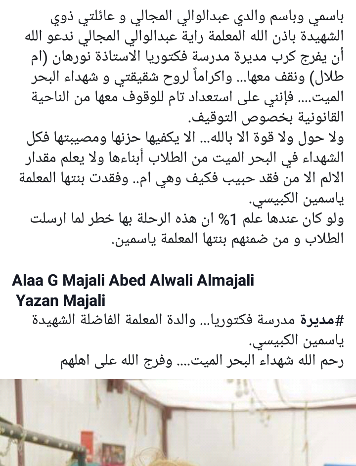 عائلة المعلمة راية المجالي يوجهون رسالة الى مديرة "فكتوريا" أردنيات